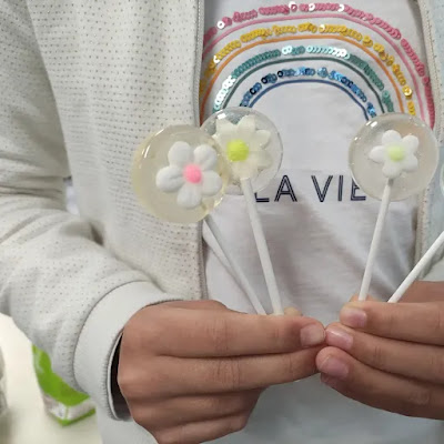 Un peu de printemps dans cette journée de pluie avec l'atelier sucettes #ateliersucettes #kidsinparis #kidsinthekitchen #atelierenfant #atelierpatisserie #lollipops #leccalecca pour une dizaine de sucettes 200g de sucre, 60g d'eau et 60g de miel d'acacia. Cuire à 155 C